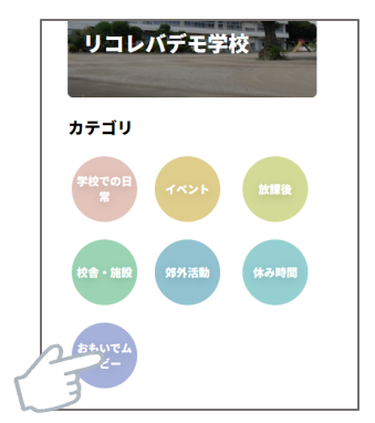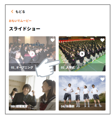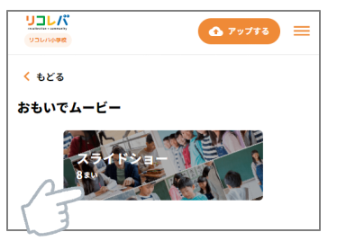 リコレバ 2024.04.23 5.動画の閲覧 [STEP1] トップページのカテゴリから「おもいでムービー」を選択してください [STEP2] イベント一覧(セクション)からご覧になりたいページを選択してください [STEP3] ご覧になりたい動画を選択してください [STEP4] 左下の再生ボタンを押してください