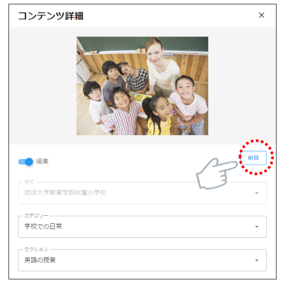 アップロード 2024.04.22 7.アップロードしたコンテンツの削除方法 自分で投稿したコンテンツの削除手順です 他のユーザーが投稿したコンテンツで不適切なコンテンツを見かけた場合は、 通報機能から当社へご連絡ください [STEP1] コンテンツ管理画面から削除したい画像の編集(えんぴつ)ボタンを押してください [STEP2] コンテンツ詳細画面が開いたら、削除ボタンを押すと、投稿されたコンテンツが削除されます ※削除したコンテンツは復元できません 誤って削除した場合は、再度投稿してください